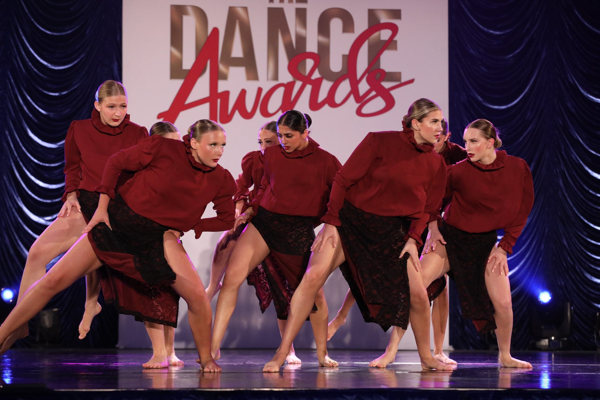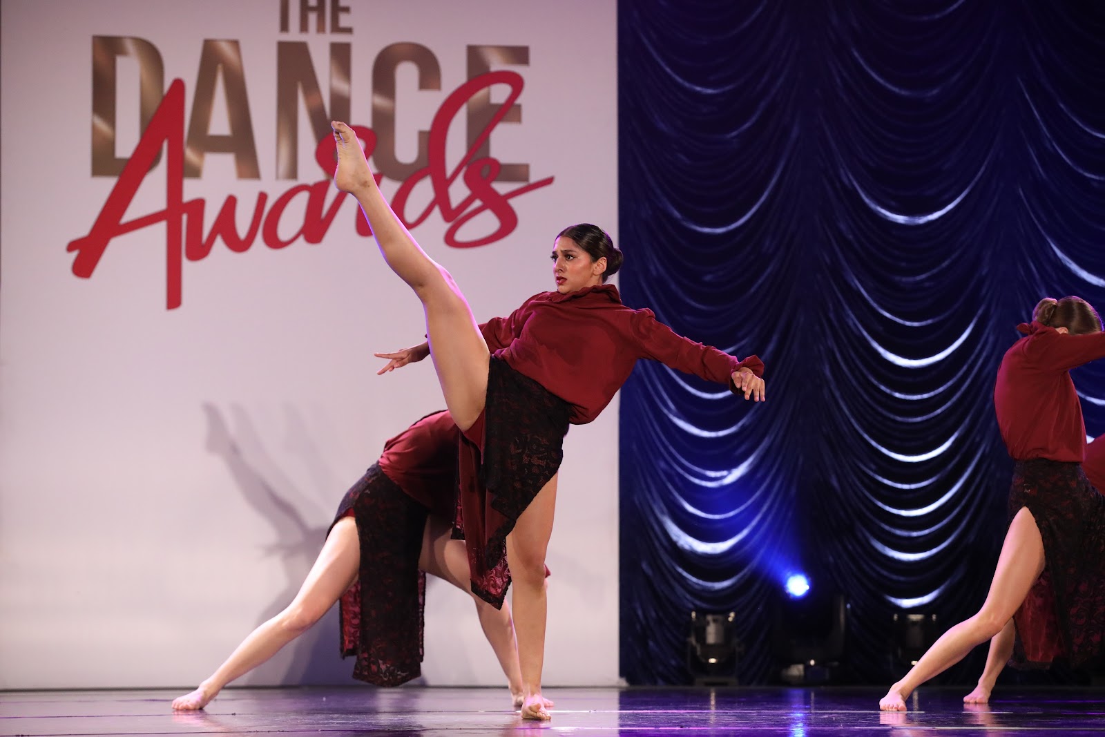 Burgundy Leo with black lace skirt