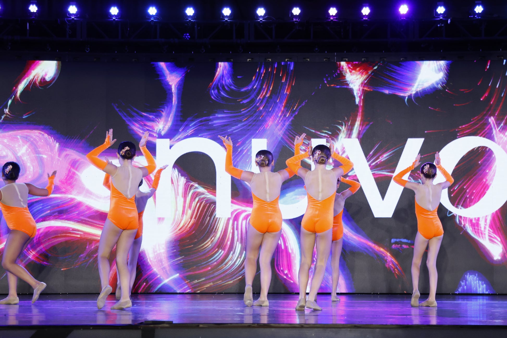 Velvety neon orange leotard with gloves & hair piece. Brand: Pumpers Dancewear. All sales are final.