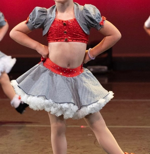 Two piece skirt and top. Custom made. All sales are final.